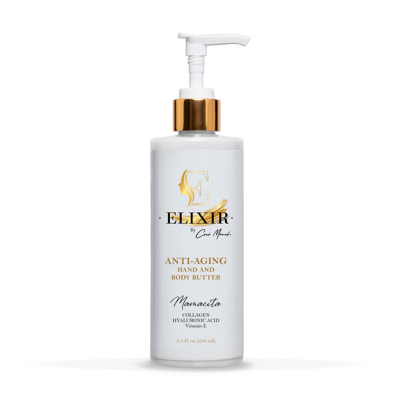 Elixir Body Butter is a line of skin care lotions that you can use every day with confidence. The perfect mixture between Shea and Coconut Butters with a voluptuous touch of exotic fruits. I have added age fighting ingredients like collagen, hyaluronic acid, and vitamins, yes, your hands and legs also want to feel youthful. Elixir Body Butters blend the intelligence of nature with the sensuality of the most ancient skin routines. Free of harmful chemicals, 100% natural, it is the ideal solution for all skin types.
