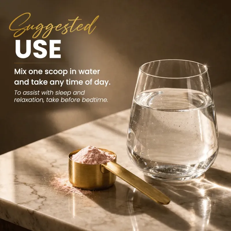 Direction: Mix one scoop in water and take any time of day, to assist with sleep and relaxation take before bed.