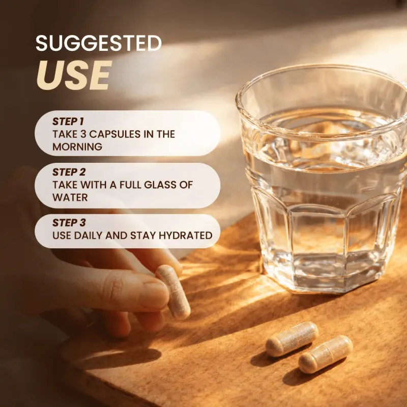 Modo de Empleo: Tomar 2 cápsulas durante el día con 12 oz (300 ml) de agua o más con cada toma.