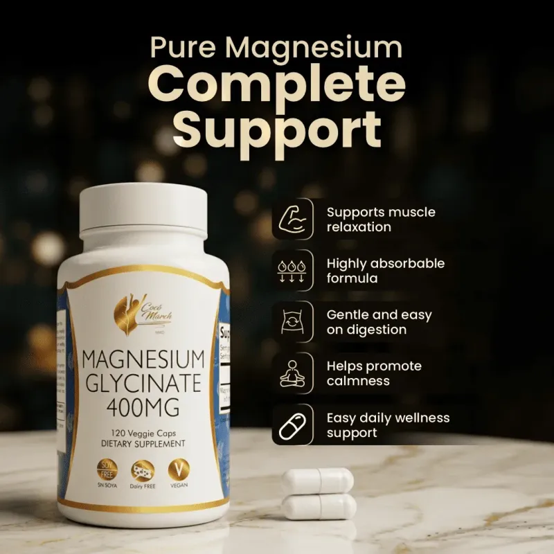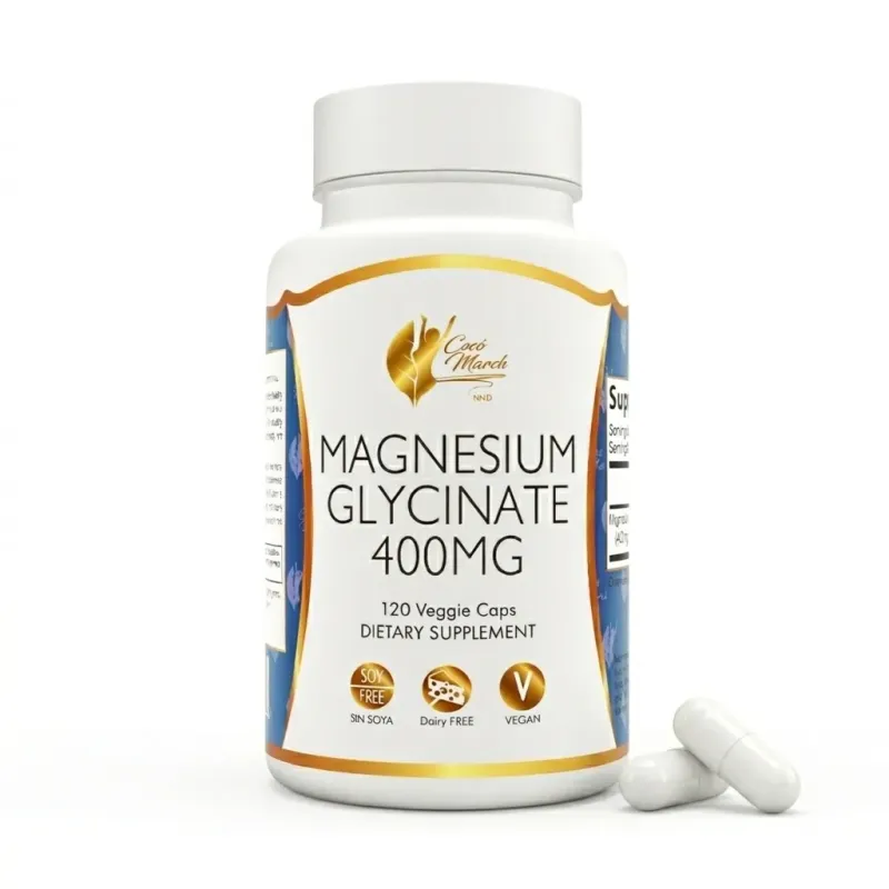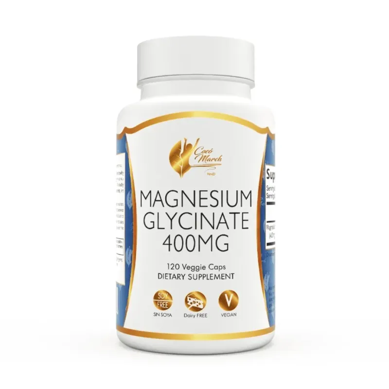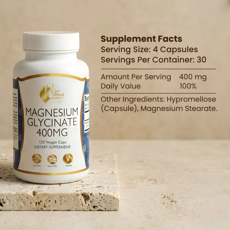 Magnesio Glicinato de Cocó March – Apoya la Relajación, el Sueño y el Bienestar General. Vegano, Libre de Soya y Lácteos, 400 mg por Porción, 120 Cápsulas – Suministro para 30 Días.