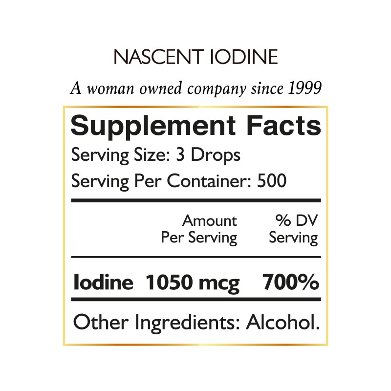 Empleo: Diluya 1 a 3 gotas de yodo naciente en agua. No exceda 3 gotas diarias a menos que lo recomiende su proveedor de atención médica. Para obtener los mejores resultados, tome 200 mcg de selenio (1 cápsula) diariamente cada vez que consuma yodo.